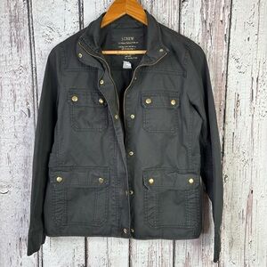 J. Crew Size Small Relaxed Boyfriend Field Jacket Cotton Black Utility Zip Snap