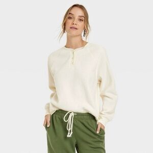 Universal Thread Crewneck Henley Sweater Fuzzy Cream size Medium
