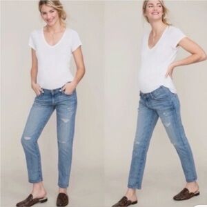 Current Elliot x Hatch Jeans Womens Blue The Boyfriend Maternity Destroyed 27