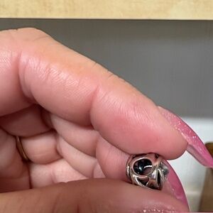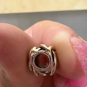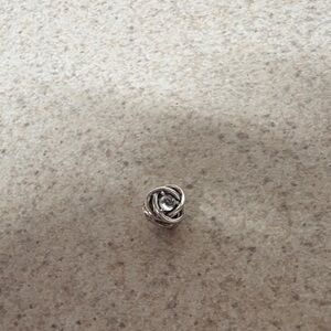 Intricate silver charm with a woven design. Perfect for bracelets.