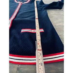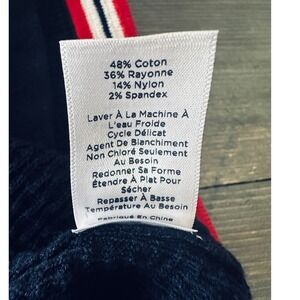 Talbots Navy Textured Knit Cardigan Red White Trim Pearl Button Women's Size M