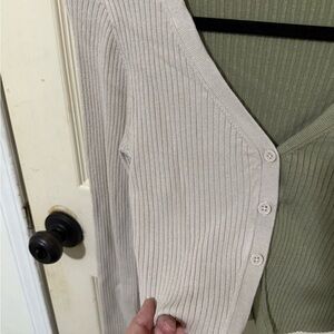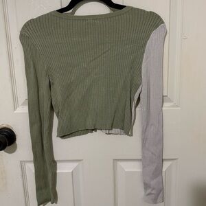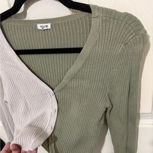Garage Two-Tone Ribbed Cropped Cardigan Top | Green & Beige | Size S