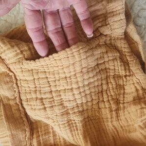 Free People shorts with 2 front pockets..the color is a light pumpkin hugh and is a crepe material or texture...the shorts are a size S but is large for a small so more of a medium in size