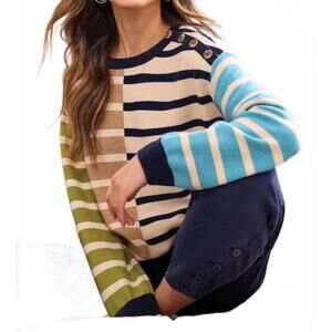 NEW TRIBAL multi stripe lightweight crewneck sweater in icelatte-3265