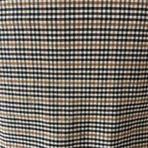 Sophisticated pencil skirt with a black and tan pattern. Ideal for professional and casual settings.