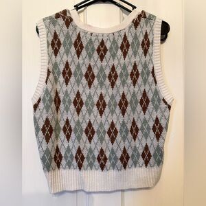 Rue21 Women's V-Neck Argyle Sweater Vest - Cream, Brown, and Green