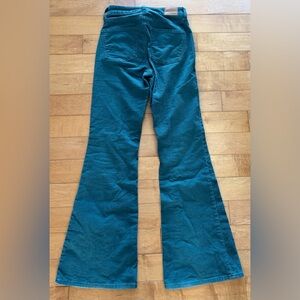 Unique American Eagle green flare jeans with button-fly front. Soft fabric and flattering flare leg — perfect for a vintage-inspired look.