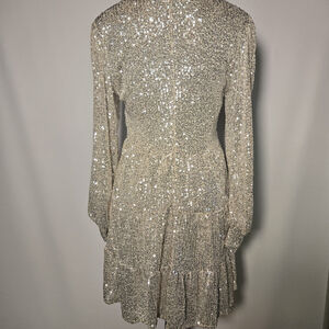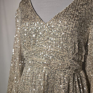 Hem & Thread Sequin Cocktail Dress Champagne Gold Long Sleeve Small NWT Party