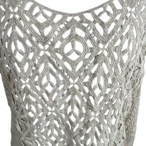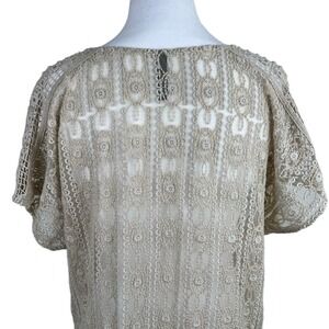 XCVI Crochet Knit Top Womens Size M Cream Bohemian Boho Open Weave Sheer Lightweight
