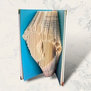 Upcycling books to art! A book where each page is very precisely measured & folded to create “Baby Feet”. Each corner has a decorative metal protector, adding to it’s beauty. 😃