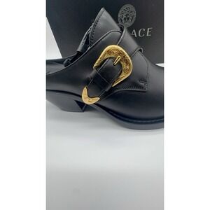 Versace Black Gold Leather Mules Heels Medusa Bucklel Women's 40 EU New