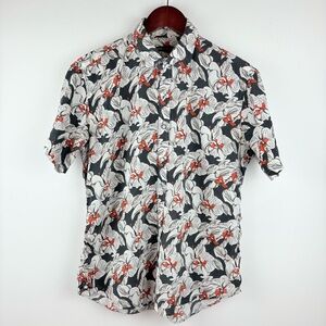 Postmarc Men’s Black Floral Tencel Blend Button Down Short Sleeve Dress Shirt M