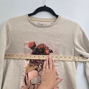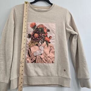 Women’s Sweatshirt M Beige Crewneck Floral Graphic Cozy Casual Streetwear Artsy