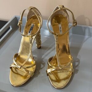 Brand new Loeffler Randall champagne suede sparkly ankle tie sandals.