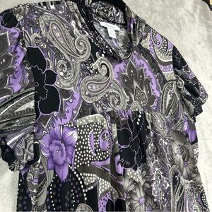 Dressbarn Paisley Dark Floral Puff Sleeve Y2K High Neck Blouse Sz XL