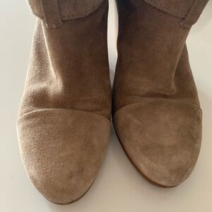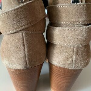 Chic suede booties with a stylish strap detail. Perfect for versatile wear.