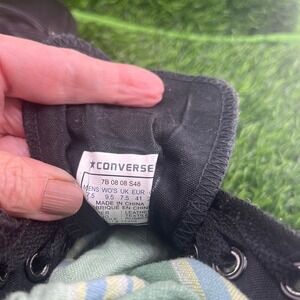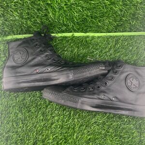 Step into timeless style with these sleek black leather Converse Chuck Taylor All Star high-top sneakers. The premium leather offers a sophisticated look while ensuring durability for everyday wear. Lace up for a secure and comfortable fit, and appreciate the iconic Chuck Taylor ankle patch that signifies classic cool. The durable rubber sole provides reliable traction, making these perfect for navigating city streets or adding an edge to your casual outfits. Ideal for concerts, weekend outings, or simply elevating your daily look. A must-have staple for minimalist wardrobes, edgy streetwear, and elevated casual outfits.