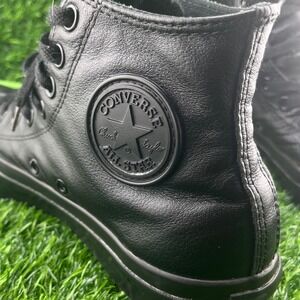 Keywords: Converse Chuck Taylors, Leather High Tops, Black Sneakers, Unisex Footwear, Classic Kicks, Streetwear Style, Casual Comfort, All Star Model, Iconic Design, Everyday Shoes, Urban Fashion, Durable Construction