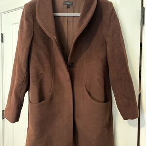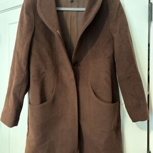 Tags: Quince, wool cashmere coat, cocoon coat, Chocolate Brown, size small, NWOT, sold out, luxury outerwear, timeless style, layering essential, warm coat, elevated basics