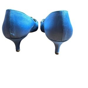 Chic satin low pump with sparkling crystal buckle detail. Ideal for elegant occasions or super cool with jeans! Sz 6.5. Adhesive residue from shoe pad plz see pics