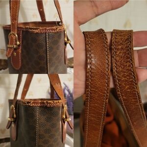 Chic Celine tote with a classic pattern. Features sturdy tan straps and elegant design. Ideal for daily use.