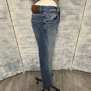 Free People We The Free 28 Risk Taker Jeans Blue High Rise Straight Raw Hem Boho