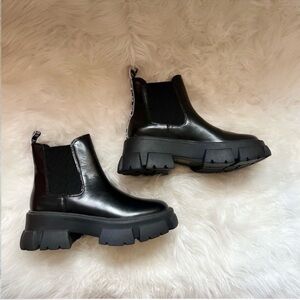 New! Steve Madden “Tusk” Black Chunky Lug Sole Chelsea Boots