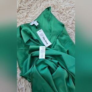 Elegant green midi slip dress with a sleek design. Perfect for any occasion.