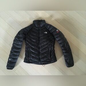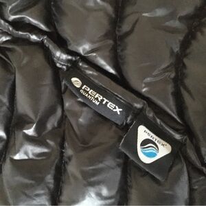 Part of the Summit Series collection, the Thunder Jacket is the ultimate, ultra-lightweight, high-power down jacket for outdoor athletes to sport in cold conditions. This thermal jacket's ample 800 fill down insulation has a true sweater-like fit that compacts small, making it ideal for backcountry overnighters. Last 2 picture shows the double zipper pocket when the jacket is packed into it. The jacket is in a good used condition there some signs of wear on the inside sleeves pet smoke free
