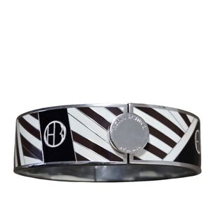 Henri Bendel American Luxury Geometeic Hinged Bangle. Features signature brown stripe and silver enamel hardware design. Excellent condition.