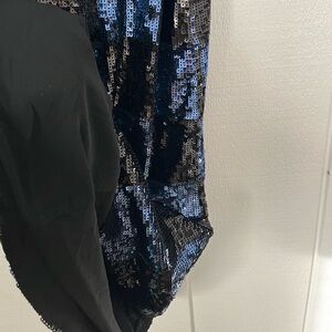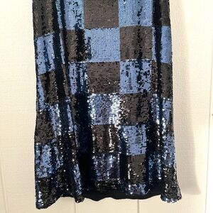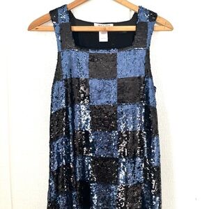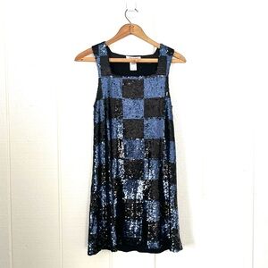 Alice + Olivia Black and Blue Sequin Mini Dress Small Check Checkerboard Pattern