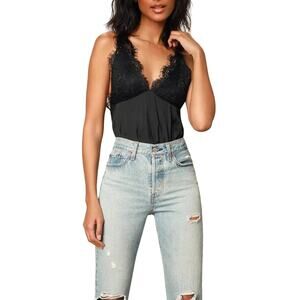 NWT Free People Melrose Black Lace V-Neck Bodysuit Open Back One Piece XS