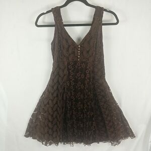 CowGirl Hardware Lace Aline Dress Women S Button Detail Empire Waist Brown