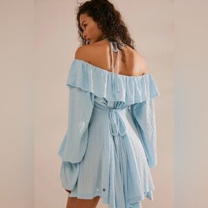Free People Beach Hayden Mini Dress Long Sleeve Hazy Sky Light Blue Small