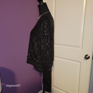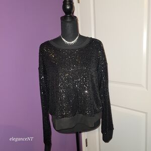 Elegant black top with shimmering sequins. Perfect for a night out. Comfortable fit.