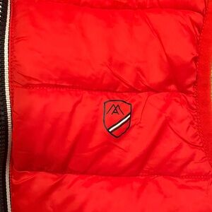 Red quilted vest with zipper closure. Includes chest logo detail. Very lightweight. Brand from Spain.