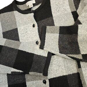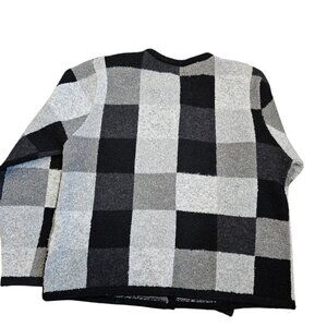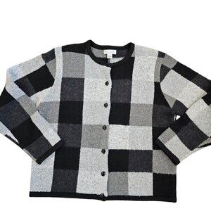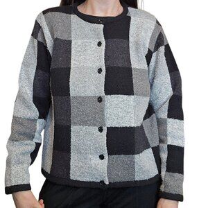 Vintage Y2K Womens M Checkered Cardigan Sweater Gray Black Classic Preppy
