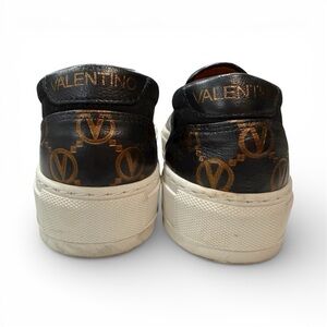 Stylish sneakers with iconic Valentino monogram. Black base with brown accents. Perfect for casual wear.