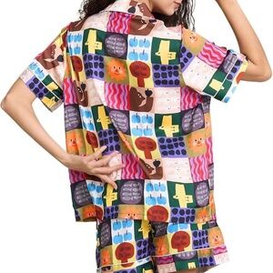 YiNi LuLu Womens Satin Shorts Pajamas Set NWT Size Small.