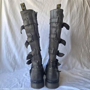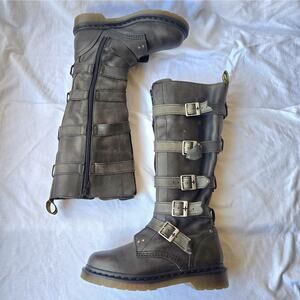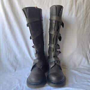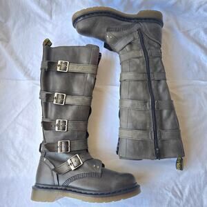 Dr Martens Phina Walking Dead Tall Leather Moto Boots Goth Gray Women's Size 7
