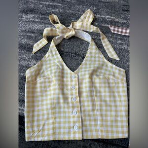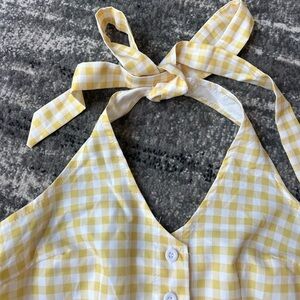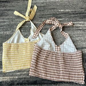 2 SHEIN Gingham Print V-Neck Button Up Halter Tops With Stretchy Back