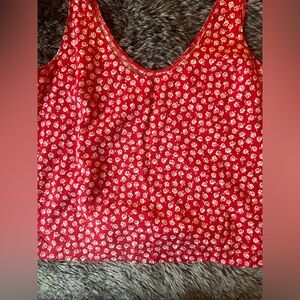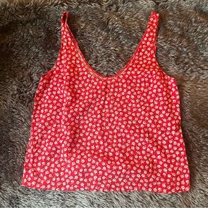 Chic red camisole with floral pattern. Lightweight and stylish. Perfect for layering or wearing alone.