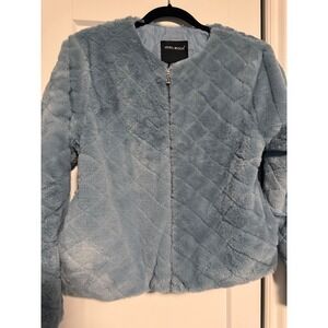 Vero Moda Womens Blue Quilted Faux Fur Bomber Jacket Size Large