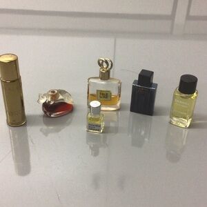 Miniature cologne bottles.Different sizes.XERYUS by GIVENCHY for men. CHANEL for men. TRUE LOVE for women. By Elizabeth Arden COLANDRE by Paco Rabanne. BEVERLY HILLS by Gale Hayman CORDETTE by Corday beautiful gold bottle but empty