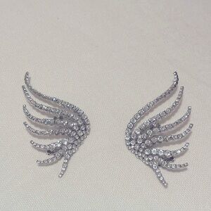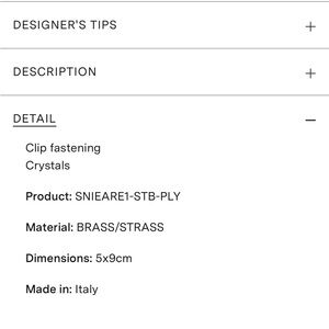 Purchased in Rome Italy, where these once to a dinner in Paris so these already have a great story and would love to you to make more stories with them. These have dual clips on the back, so they act like an ear cuff as you can tell from the photos and go up your ear, but you’ll clip them in two places, these are the palladium and crystal with the box. The two pieces of Styrofoam lined with velvet inside and the pouch ready for gifting. The price you see in the photo from their website is in euros so I’ve listed the original price in US dollars.