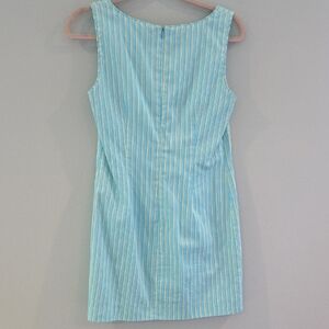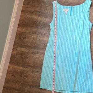 Talbots size 4 aqua mini dress with yellow stripes.