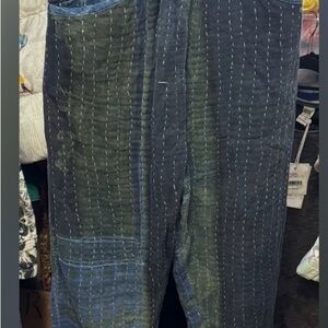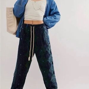 NWT FP Dr Collectors Textured Green and Indigo Pleated Kantha Pants