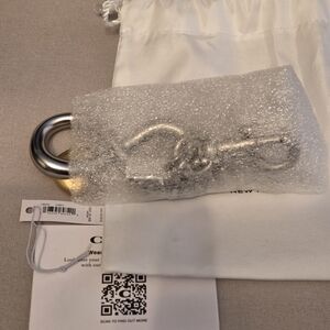 Stunning yet refined Coach keychain with silver and gold tones. Features an infinity design with a heart accent. From the "Summer I Turned Pretty" collection.