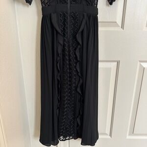 Self-Portrait Black Guipure Lace Pleated Midi Dress – Ruffle High Neck Belted 2