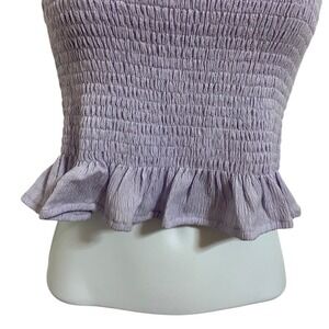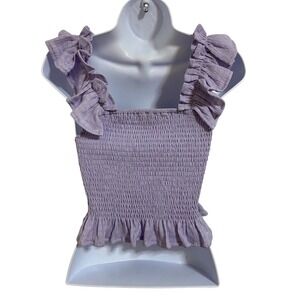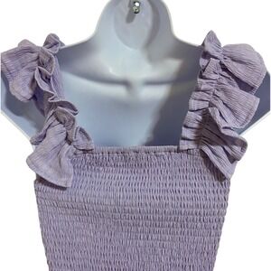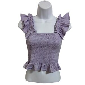 MIOU MUSE NEW Lavender Smocked Ruffle Square Neck Crop Top Cottagecore Size S